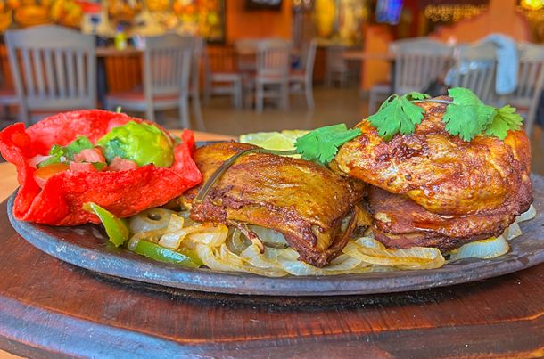 (2) Flour Tortillas loaded with charbroiled beef or chicken fajitas, served with guacamole, pico de gallo, frijoles a la charra and rice.