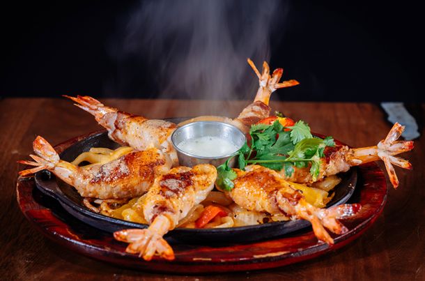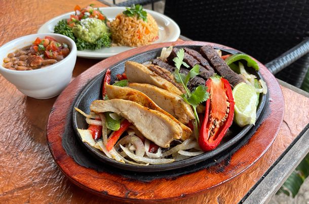 Beef fajita, chicken fajita, carnitas and (8) jumbo shrimp