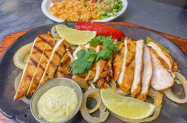 Tender fried steak or chicken breaded with special Mexican seasoning, served with rice, refried beans, guacamole and french fries